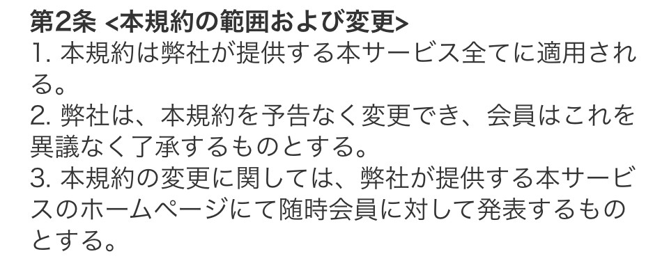 これは知らない間にサイト側に有利な改定をされる可能性があり、会員はそれに対して文句は言えないということになりますます。
