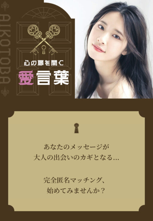 愛言葉(あいことば) は、合同会社ラインワークが運営する、いわゆる“出会い系サイト”や“マッチングサイト”に分類されるサービスですが、大手のマッチングアプリ(Pairs・タップル等)とは大きく異なります。
