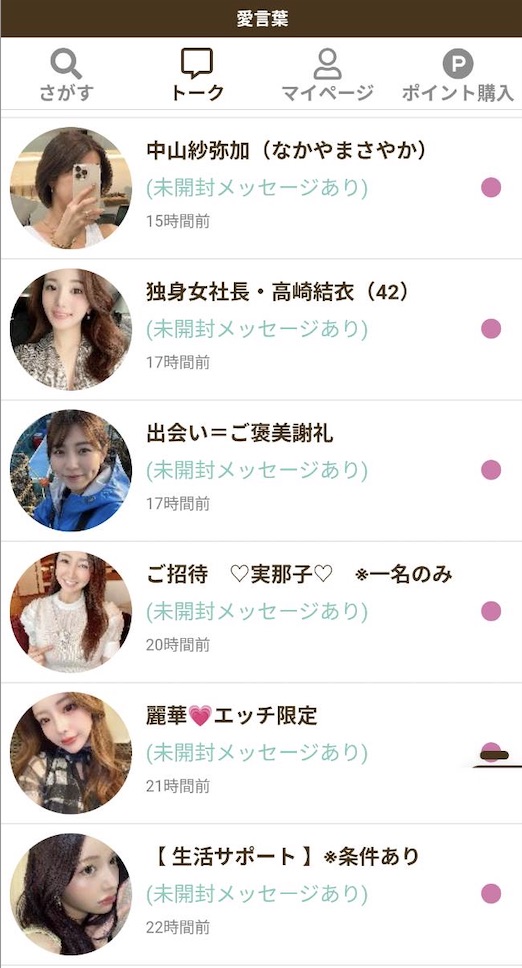 綺麗な人がたくさんいて選ぶのに迷うくらいです。実際にメッセージもたくさんもらえるので毎日が楽しいです!