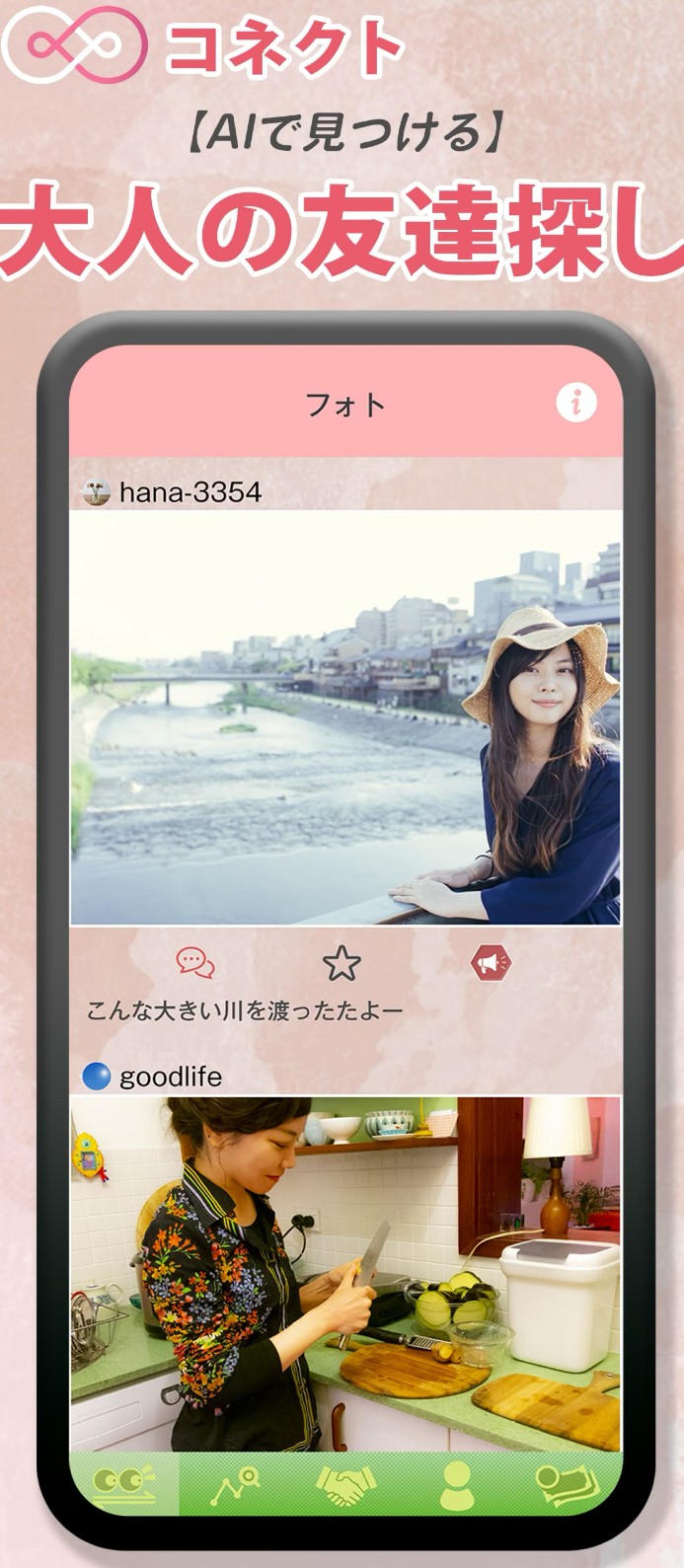 アプリ名:写真や動画の共有でAIと見つける大人の友達探し|コネクト