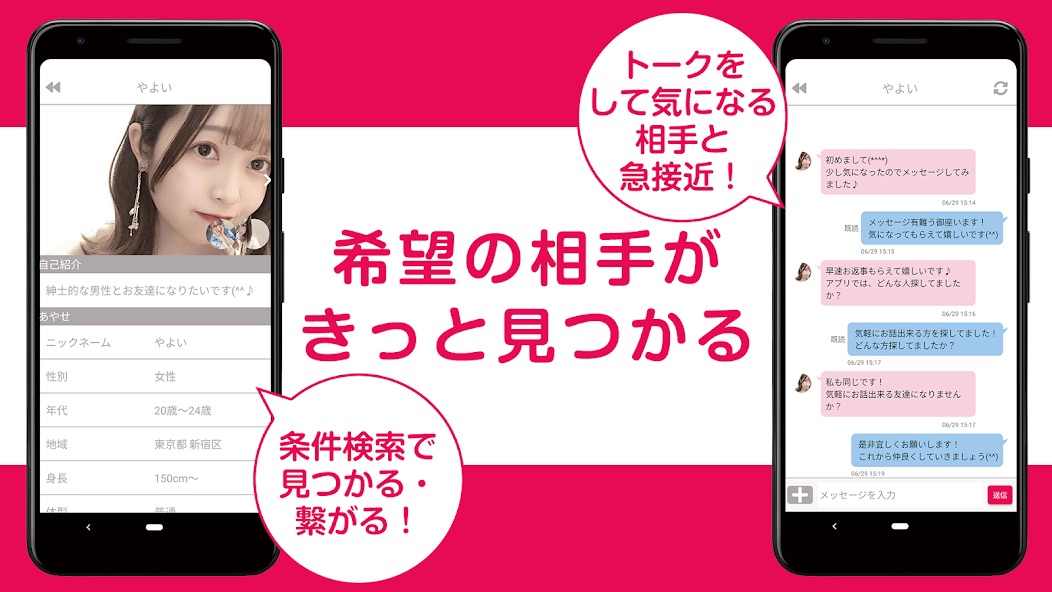 使ってみた感想ですが、すごく連絡が取りやすくて効率的で、出会いを見つけるのに役立つアプリでした。自分に合った人を探すのが効率的で、かなり気に入りました!気軽な出会いから真剣な出会いまで幅広く使えるので、人見知りの自分でも話しやすい相手がいるから、誰でも使えるんじゃないかなと思います。