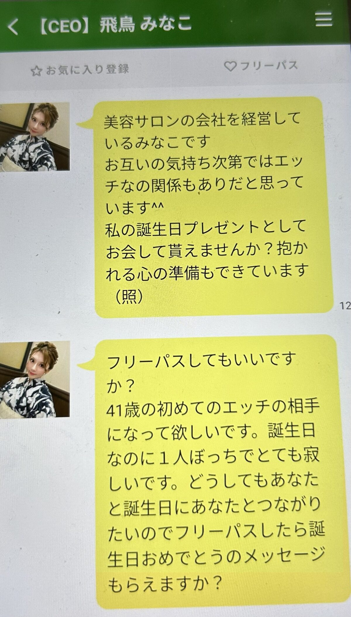 フリーパスしてもいいですか?41歳の初めてのエッチの相手になって欲しいです。誕生日なのに1人ぼっちでとても寂しいです。どうしてもあなたと誕生日にあなたとつながりたいのでフリーパスしたら誕生日おめでとうのメッセージもらえますか?