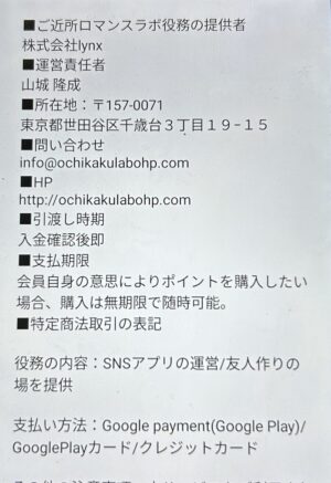 アプラボ!が調査した結果、「ご近所ロマンスラボ」の特定商取引法の表記は限りなく怪しいものになっています。