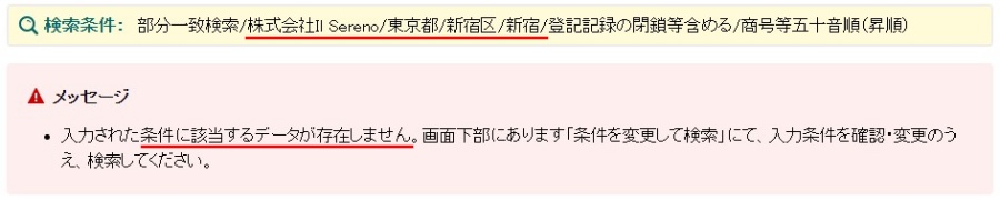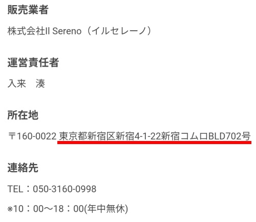 このように、「株式会社Il Sereno」はサイト内の特商法ページに記載されている「東京都新宿区新宿」の住所で法人として登録されている情報は確認できませんでした。