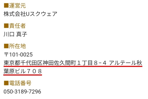 また、運営会社である「株式会社Uスクウェア」を現在表記の住所で調査してみた結果が以下の画像です。