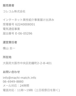 アプラボ!が調査した結果、「街マッチ」の特定商取引法の表記は限りなく怪しいものになっています。