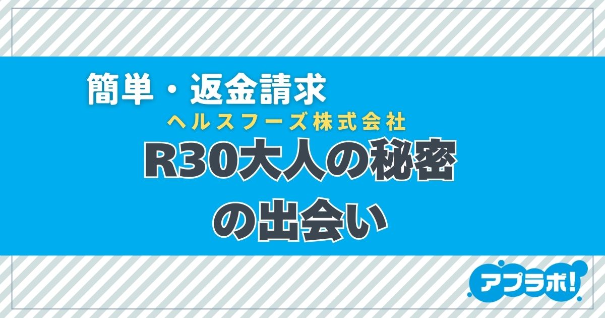 今回徹底検証するのはヘルスフーズ株式会社が運営する出会い系サイト「R30大人の秘密の出会い」です。