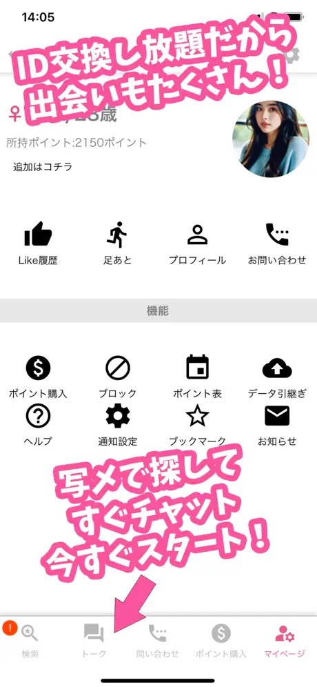 色んなタイプの女性から 誘いのメールがきます。清楚な女の子から ビッチなギャル 人妻、熟女 たくさんいるので タイプは必ずいます。