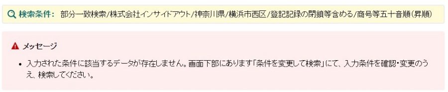このように、サイト内の特商法ページに記載されている「神奈川県横浜市西区境之谷87-75カントリー西横浜201」の住所で法人として登録されている情報は確認できませんでした。