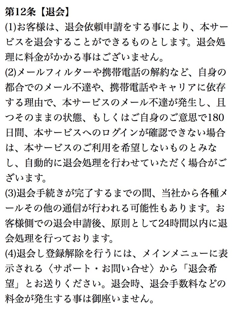• 退会方法や条件が別ページの奥にしか掲載されていない